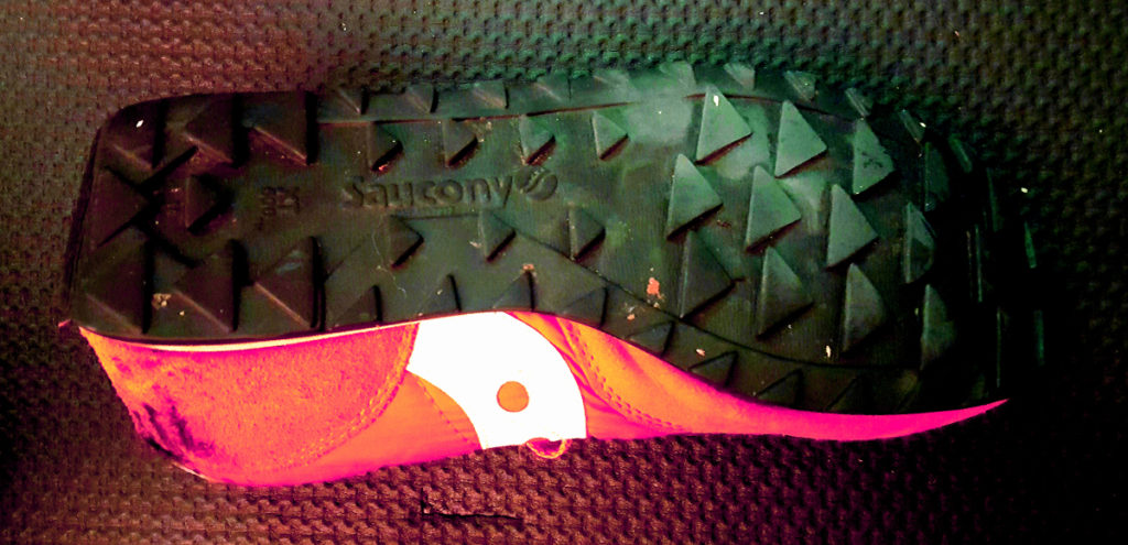 Triangle outsole tread of the saucony jazz originals running shoe orange