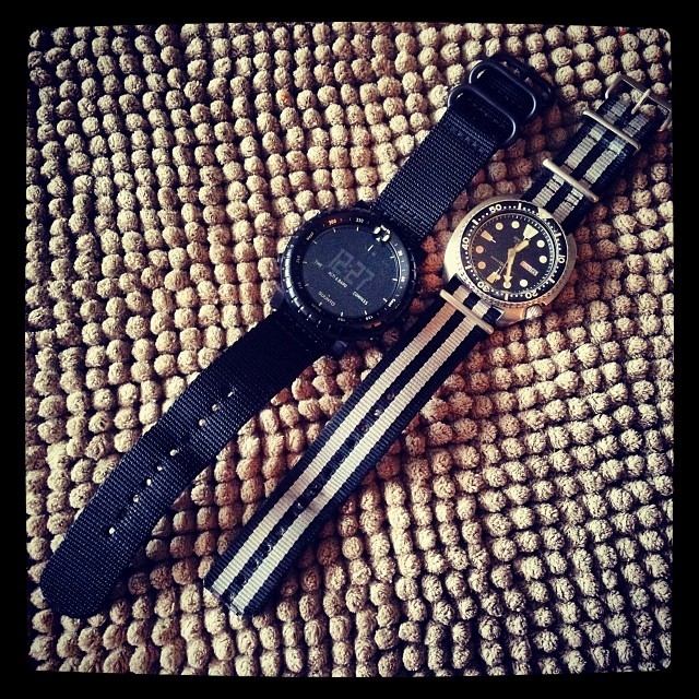 SUUNTO CORE BLACK with Seiko 6309-7040 Turtle Automatic Diver on a Bond NATO strap