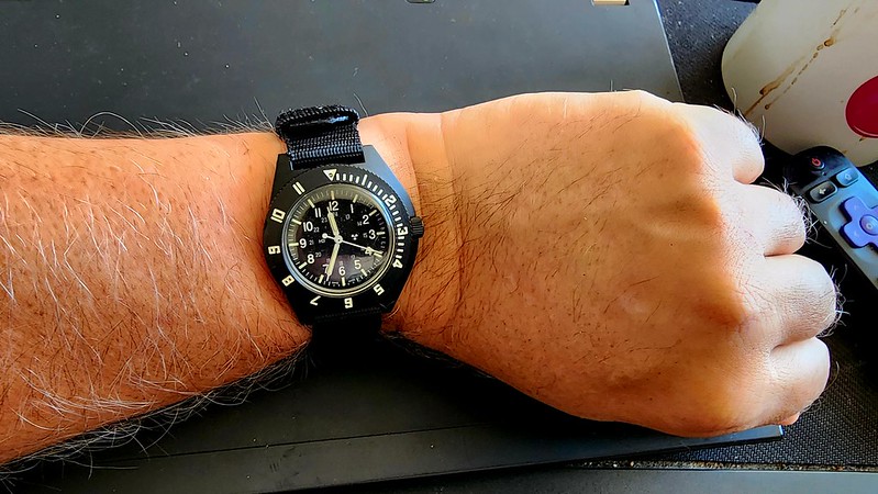 On wrist 2010 Marathon Watch Pilot's Navigator with pass through nylon strap