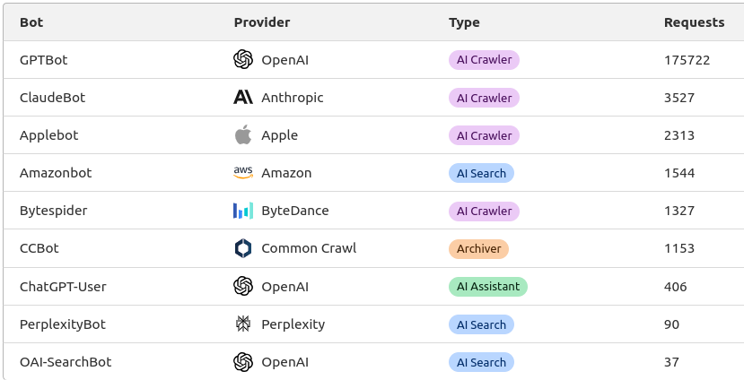 List of AI Bots from CloudFlare AI Audit